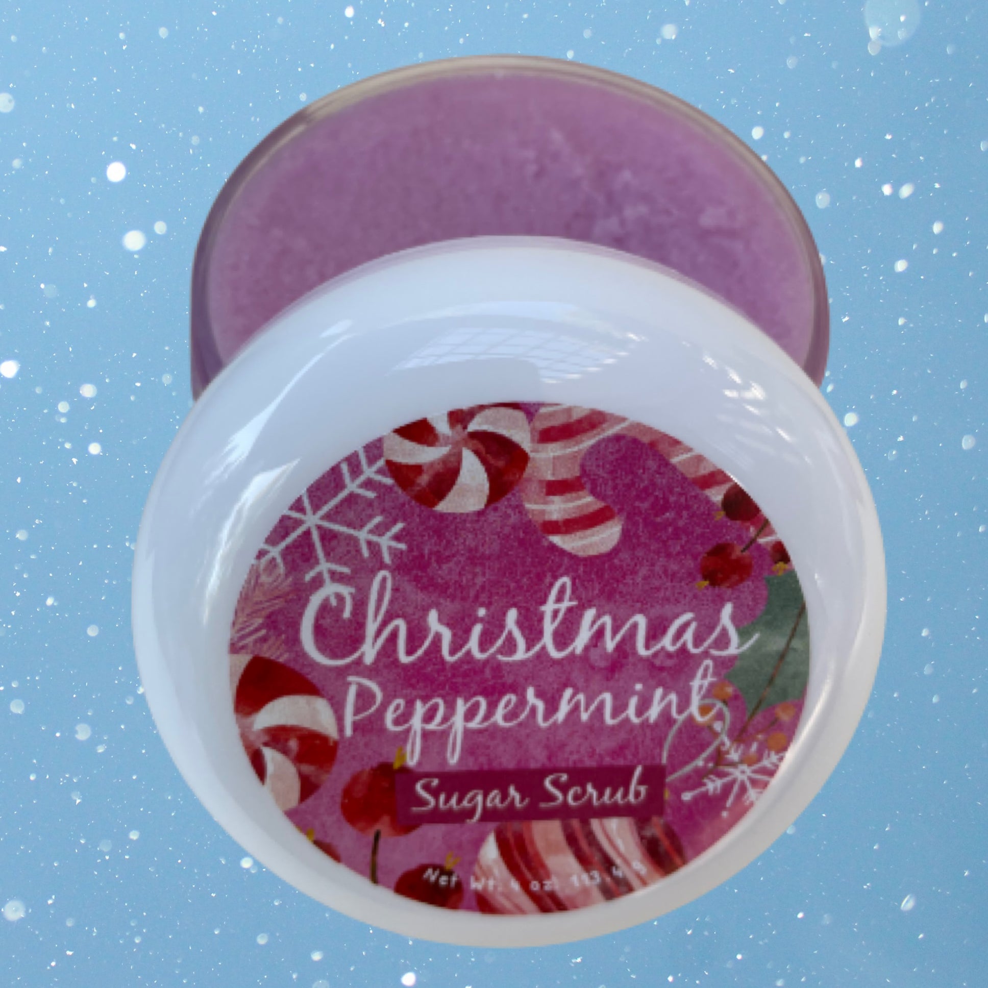 Our Christmas Peppermint sugar scrub scented like the Christmas candy cane. Exfoliate dry skin with this refreshing peppermint sugar scrub. After one use your skin is left smooth and smelling amazing. The perfect stocking stuffer idea. With the cold winter weather, it is the perfect gift to keep the skin moist and smooth. 4 oz. jar