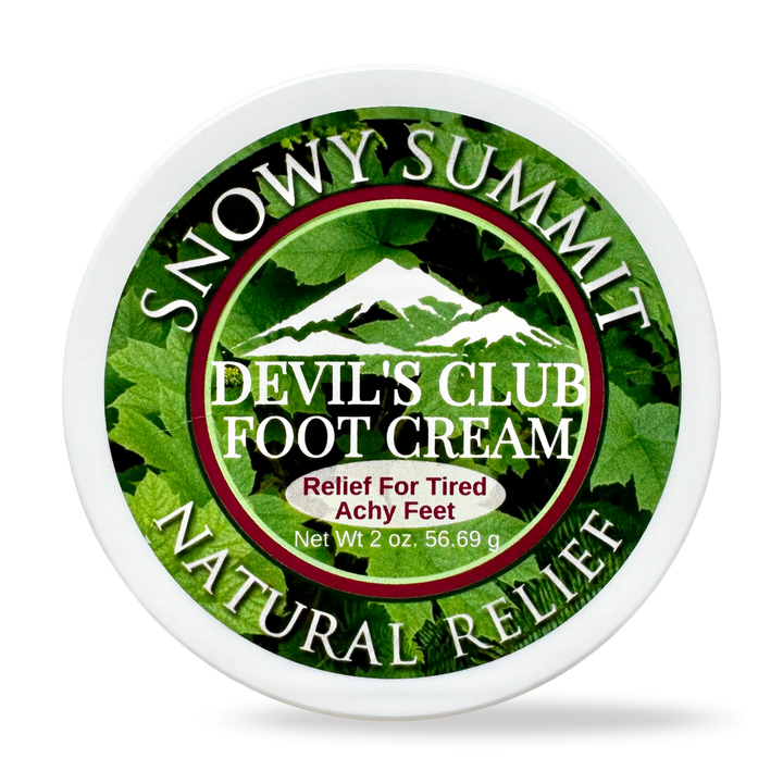 Devil's Club Herbal Foot Cream utilizes oil extracts from this thorny shrub known as the Devil's Club plant. Most effective for arthritic joint pain/inflammation, localized muscle pain/soreness, and chronic skin conditions like psoriasis and eczema Devil's Club herbal cream absorbs easily into the skin leaving your skin soft and moist. 2 oz. jar