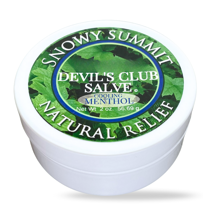 Our Menthol Devil's Club Salve is an all-natural pain reliever. A great natural salve made to help relieve pain and reduce inflammation in joints and muscles. Massage this natural salve onto achy joints and muscles to help reduce pain and inflammation. This salve has a light menthol scent, you can feel the menthol cool the skin where applied.