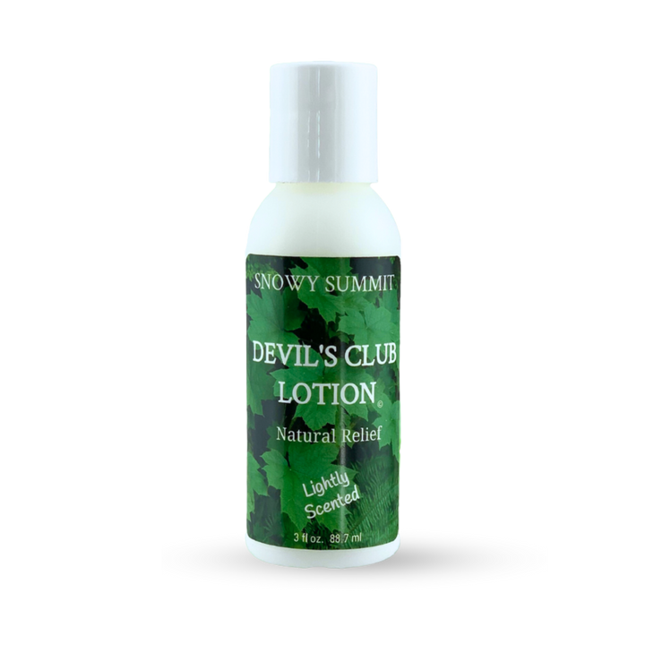 A silky lightweight lotion made with Devil's Club oil. Devil's Club is a natural anti-inflammatory. Lightly scented. 3 oz. bottle