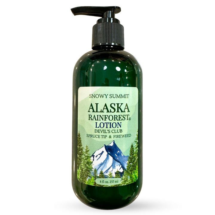 Our Devil's Club Rainforest Lotion 8oz. is infused with Devil's Club oil, fireweed oil and spruce tip oil. The Rainforest lotion is lightly scented and has been curated to relieve and soothe.