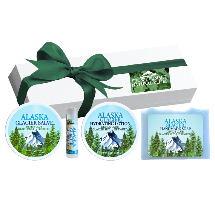 Give the gift to elevate any skincare regimen with our thoughtfully curated Glacier Gift Box. This comprehensive collection brings together four essential products—a nourishing salve, protective lip balm, hydrating lotion, and gentle soap—designed to work together for complete skin wellness. Each item has been selected to address different aspects of daily skincare, making this an ideal choice for those seeking a complete, professional-grade routine in one elegant package.