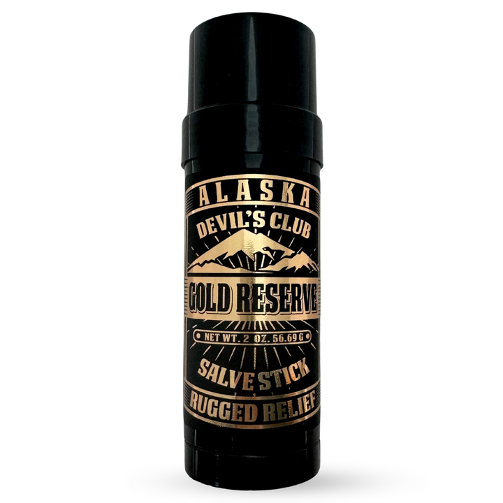 Our premium, healing salve stick may help with aching joints, muscles, rashes & insect bites. Enriched with Alaska Devil's Club Oil to harness the untamed Alaskan wilderness and provide Rugged Relief. 2 oz. propel stick